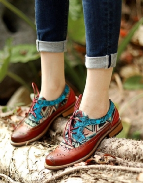Komfortable Myke Retro Flate Sko I Mykt Skinn Med Snøring