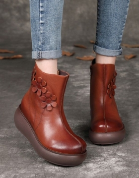 Flower Retro Leather Wedge Ankel Boots