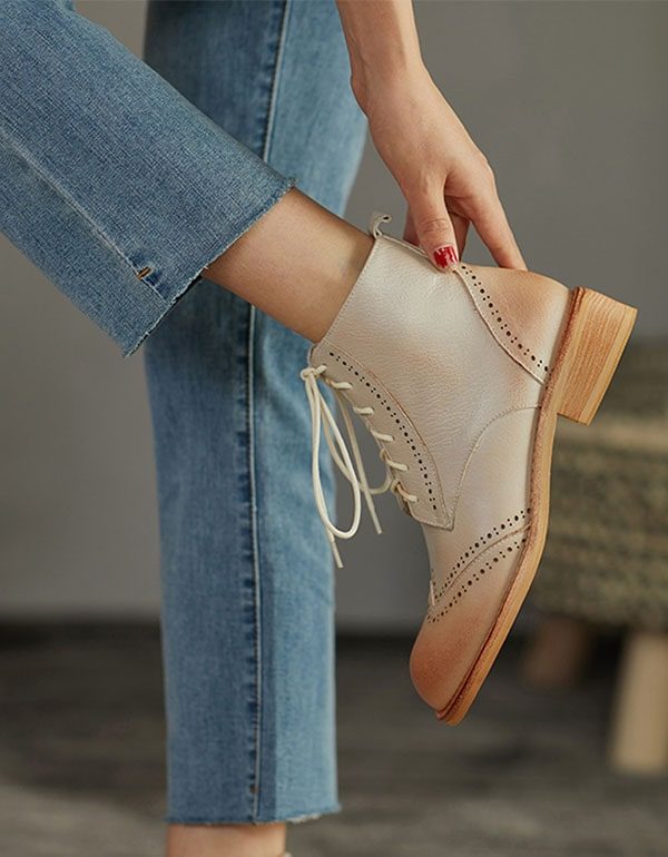 100 % Håndlagde Vintage Bullock Oxford-støvler I Lær