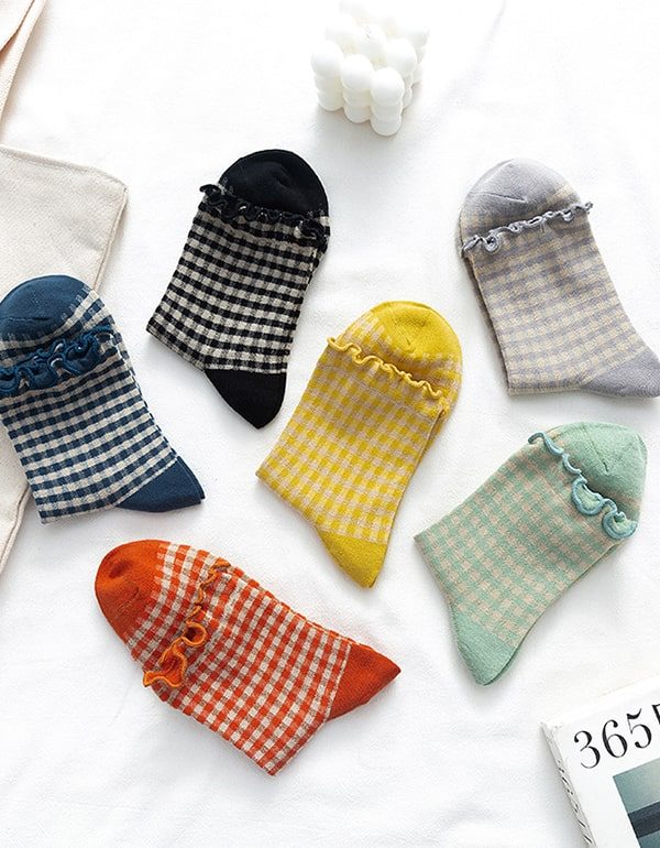 2 Par 6 Farger Rutete Bomullssokker For Kvinner