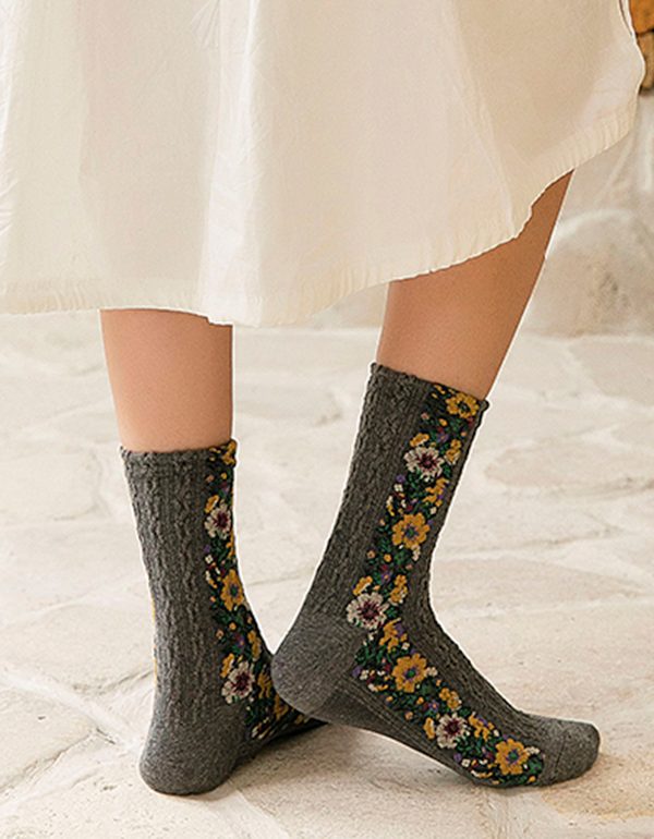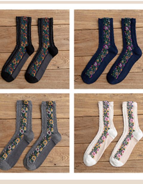 4 Par Vintage Sokker Dame Lange Tube Sokker Floral