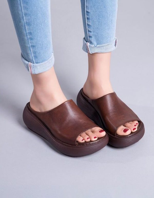 Åpen Tå Retro Leather Sommertøfler Sandaler