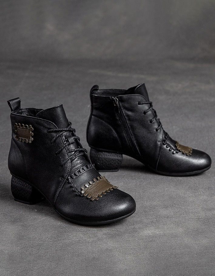 Håndlagde Retro Leather Patch Chunky Boots