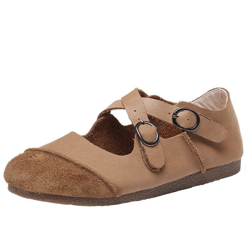 Håndlaget Mykt Lær Cross Strap Flate Sko Spring