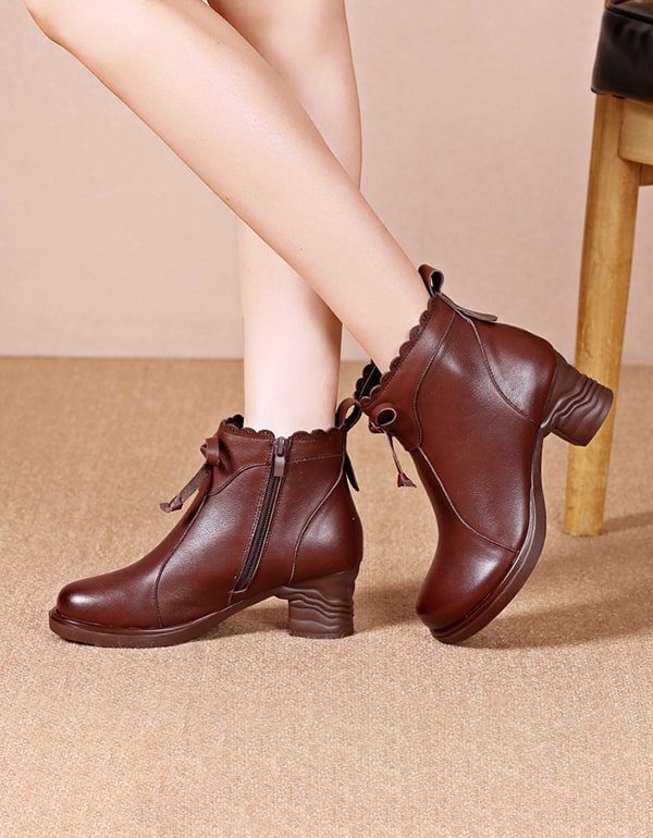 Håndskårne Bowknot Elegant Chunky Boots Dame