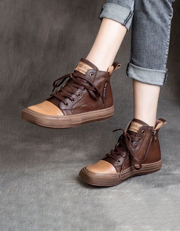 Høst Square Head Håndlagde Sneakers I Retro Skinn