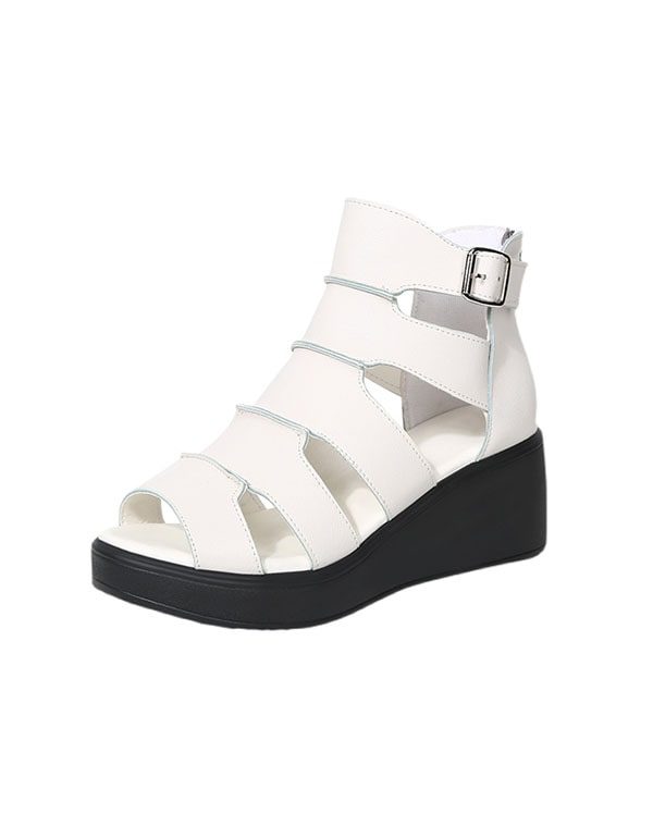 Nye Sandaler Med Ankelstropp I Retro Skinn For Kvinner