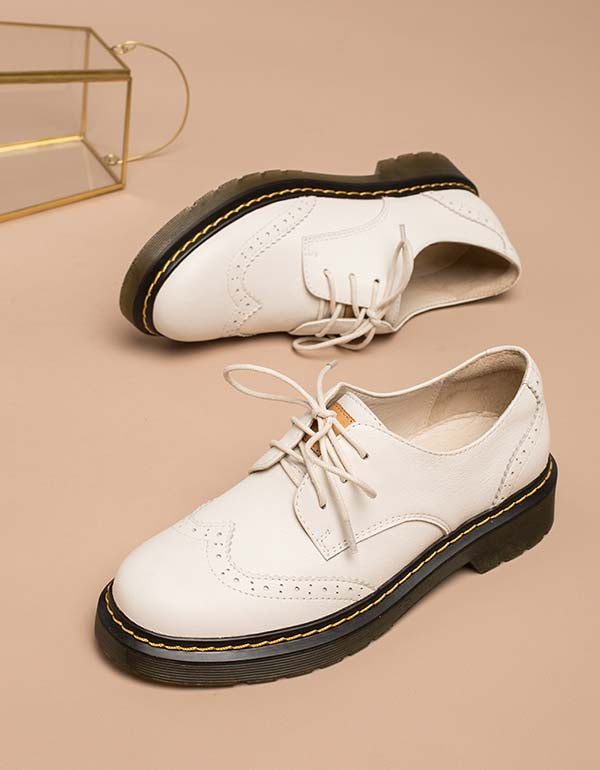 Oxford Sko Med Tykk Hæl I Ekte Skinn Til Kvinner