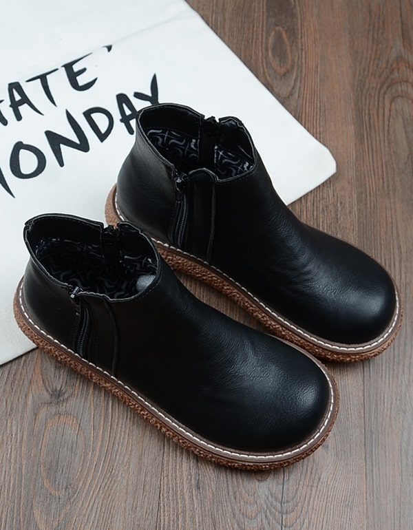 Retro Damestøvler I Glatt Skinn