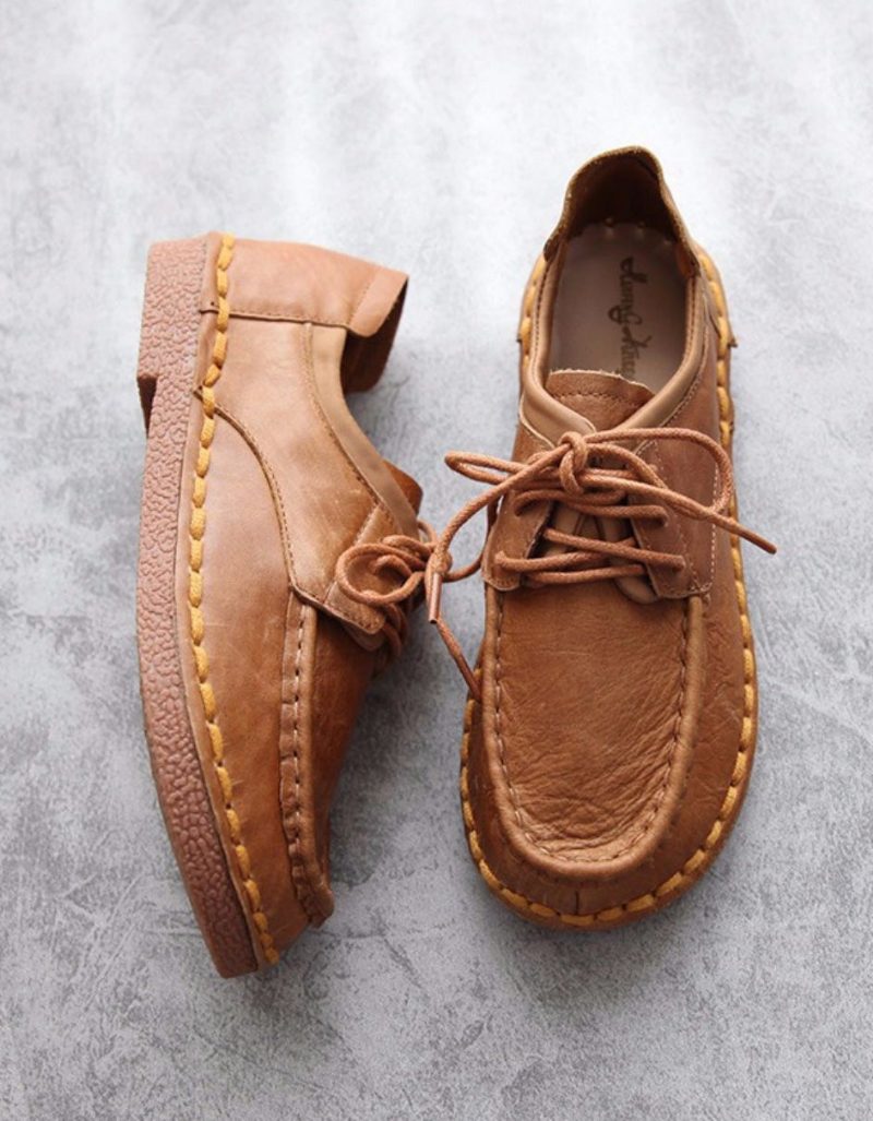 Retro Flate Sko Med Snøring I Mykt Skinn