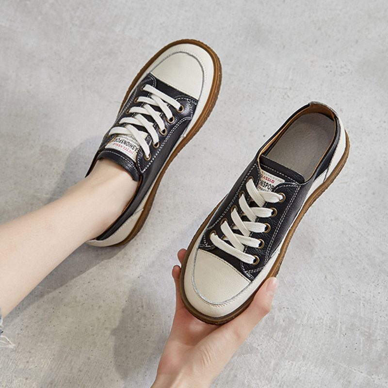 Retro Skinn Snøring Casual Damesko