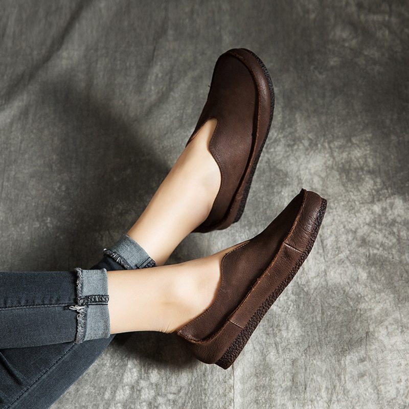 Salg Håndlagde Myke Skinn-slip-on Retro Flate Sko