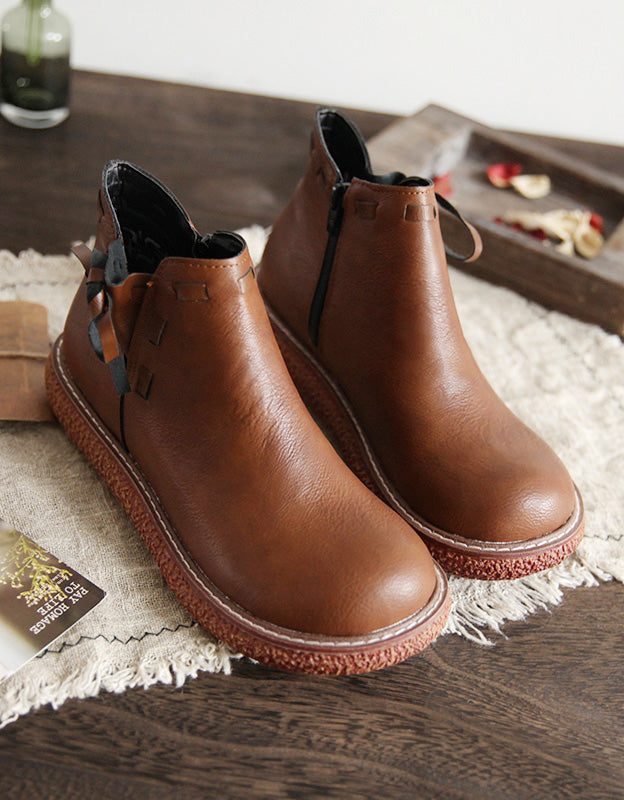Sklisikker Håndlagde Plattformstøvler I Retro Skinn