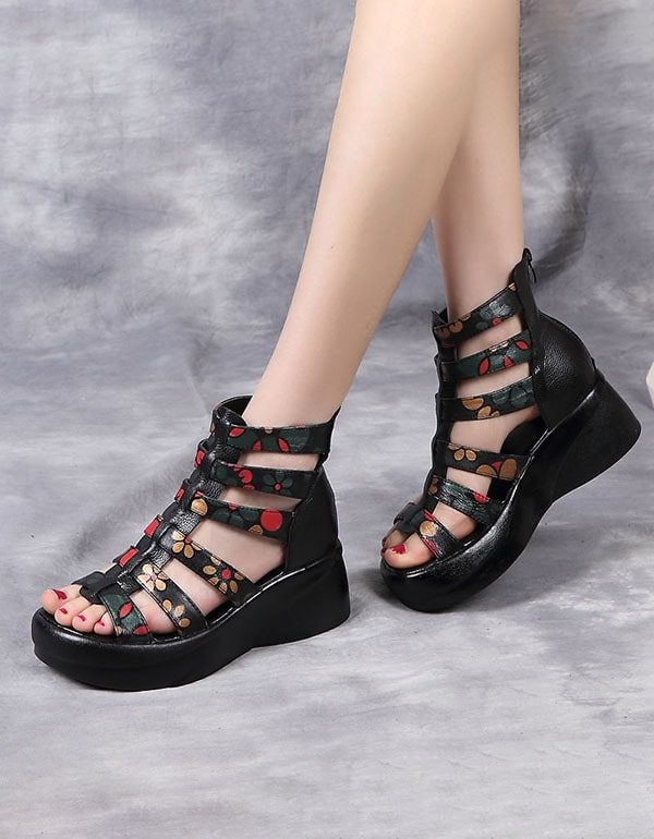 Sommersandaler Med Skinntrykt Kilehæl