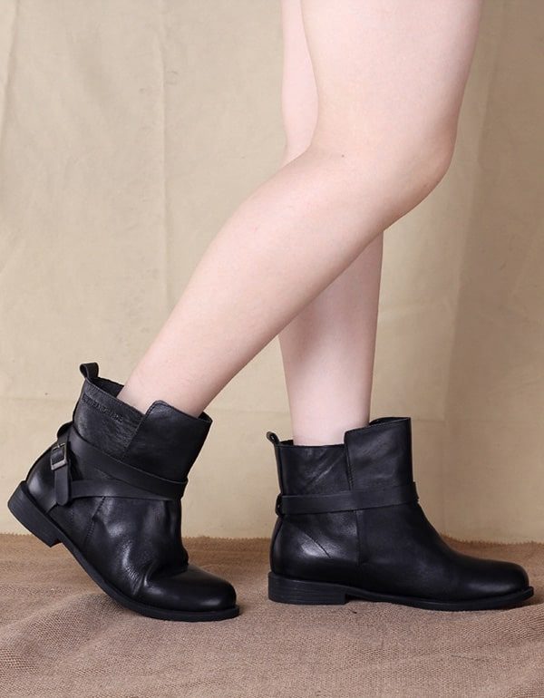 Vår Høst Håndlagde Støvletter Svart